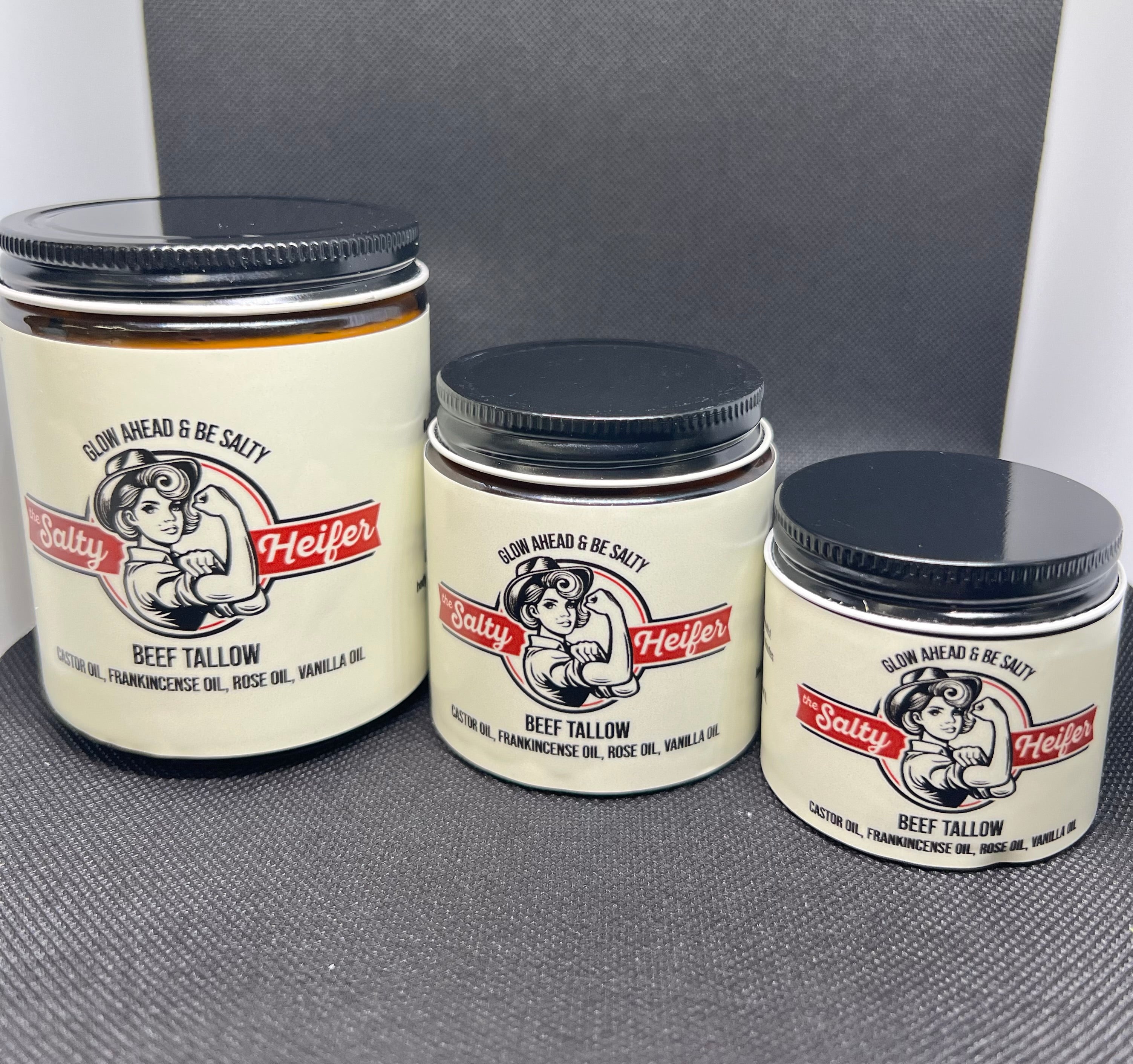 Whipped beef tallow with castor oil, frankincense oil, rose oil, and vanilla oil. This little lady is classy, but also totally sassy. She is fresh and has calming floral hints, but leans on castor oil to help hide those fine lines and wrinkles. Beef tallow is naturally rich in vitamins A, E, K and D and rendered from beef leaf fat to give your skin the treat it deserves.